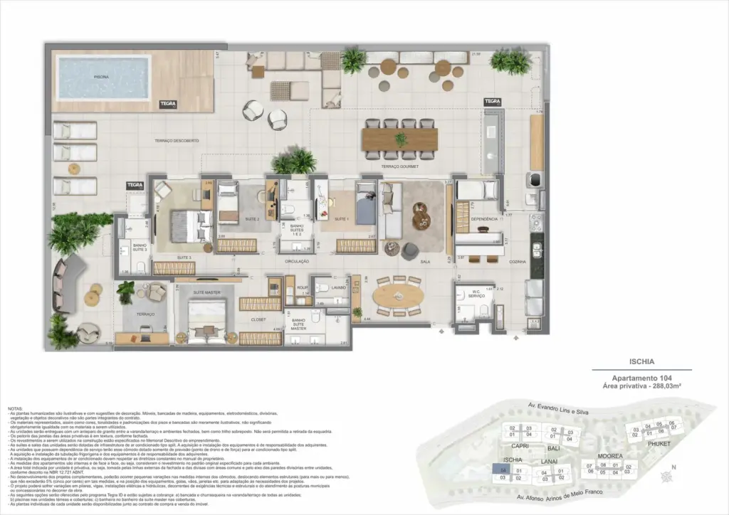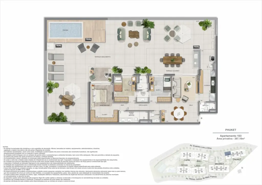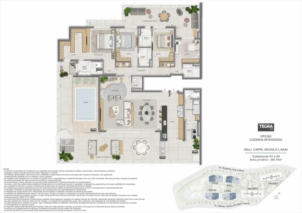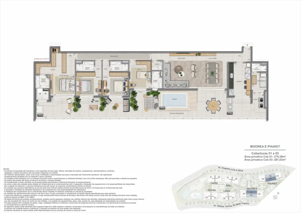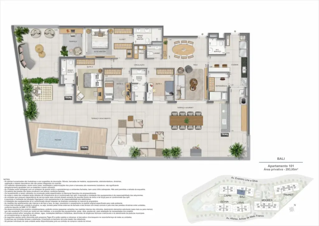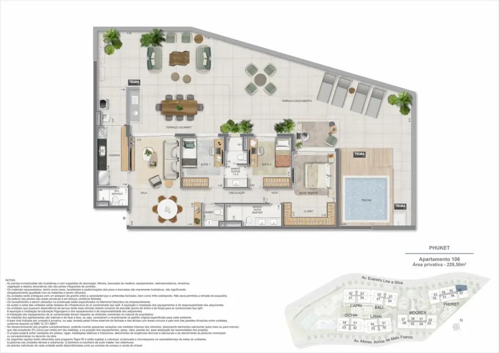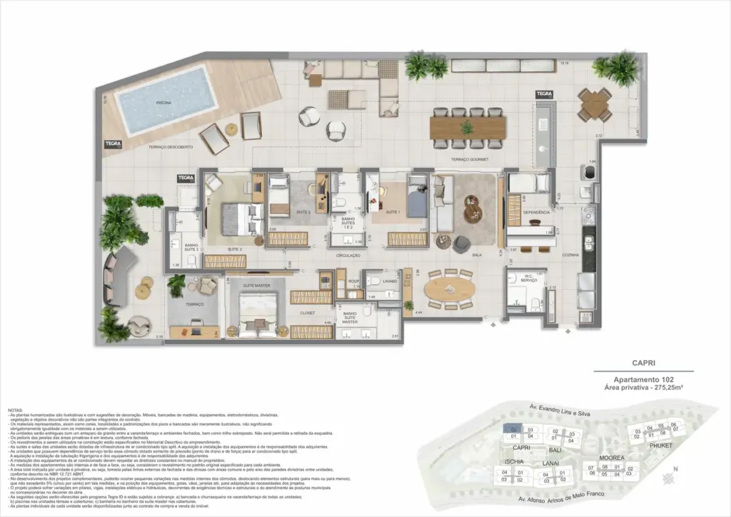 Na Barra da Tijuca, entre o azul da praia e a conveniência da Av. das Américas, o Gaea Home Resort foi pensado para quem deseja um cotidiano de resort sem abrir mão da privacidade. O masterplan integra arquitetura contemporânea, paisagismo exuberante e serviços para tornar cada dia mais prático: lobbies amplos, circulações bem resolvidas e áreas de lazer distribuídas em pavimentos que alternam descanso, esporte e convivência. Os apartamentos-tipo de 3 e 4 suítes priorizam integração entre sala e varanda, com ventilação e luz natural abundantes; os gardens ganham terraços generosos para receber, cultivar e relaxar; e as coberturas lineares elevam a experiência com espaços ao ar livre dimensionados para refeições, banho de sol e contemplação. Nos ambientes comuns, o lazer se desdobra em academia completa, coworking, salões gourmet e de festas, brinquedoteca e playgrounds, além de um complexo aquático com raia de 25 m, piscina infantil, deck molhado e solário. Para celebrar, a Pool Party House reúne lounge climatizado, varanda com churrasqueira e forno de pizza; para desacelerar, o Gaea Spa oferece hidromassagem e salas de massagem. Quadras de areia, quadra recreativa e áreas ao ar livre ampliam as opções de movimento, enquanto facilidades como beach facilities, library of things, minimarket, espaço delivery e infraestrutura para carregamento de carros elétricos reforçam o senso de comunidade e praticidade. Um refúgio urbano, conectado aos melhores endereços da Barra e pronto para acolher diferentes ritmos de vida.