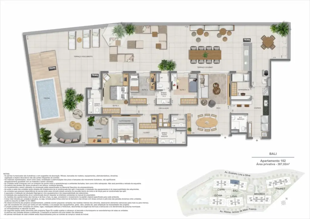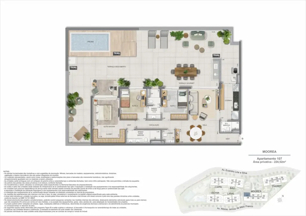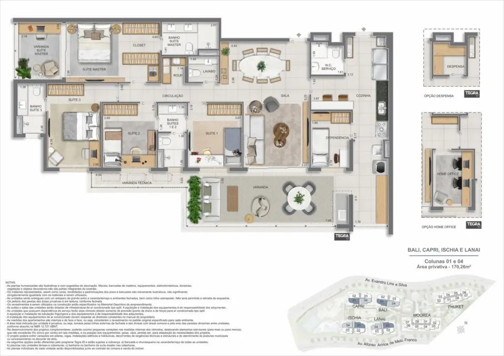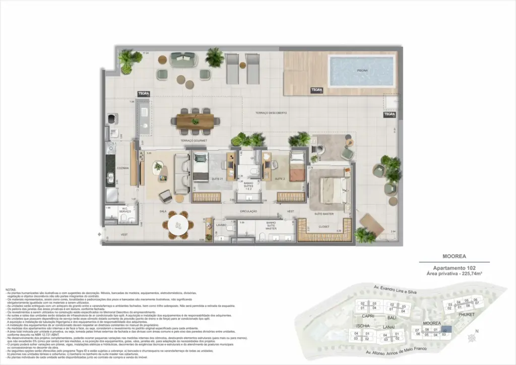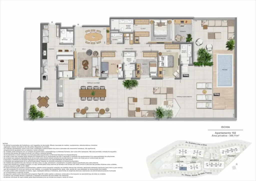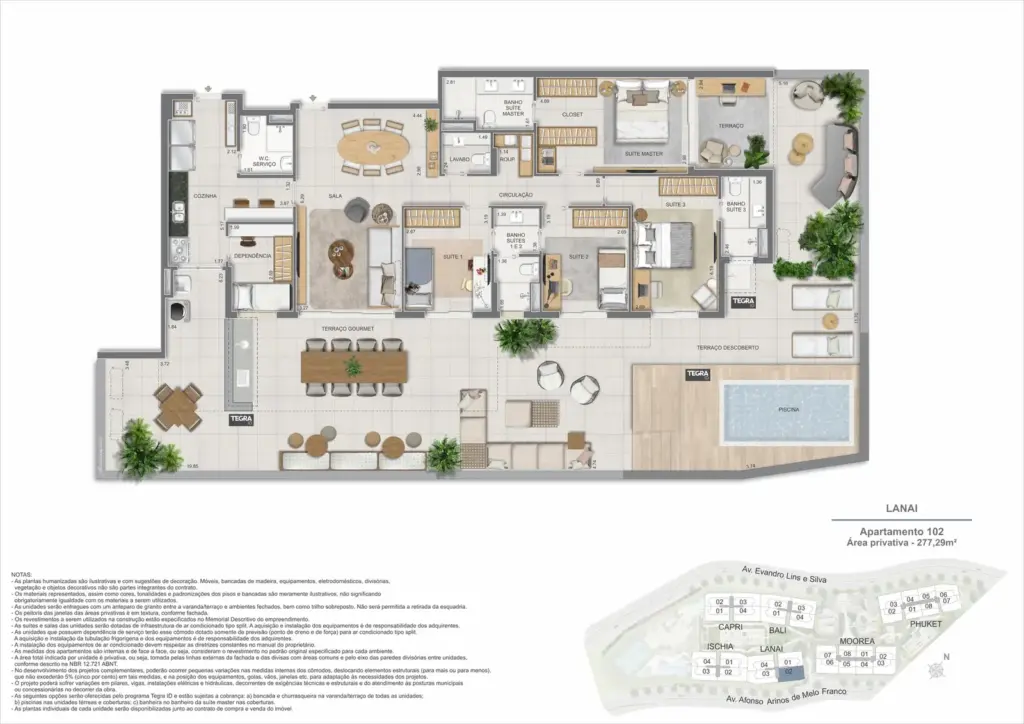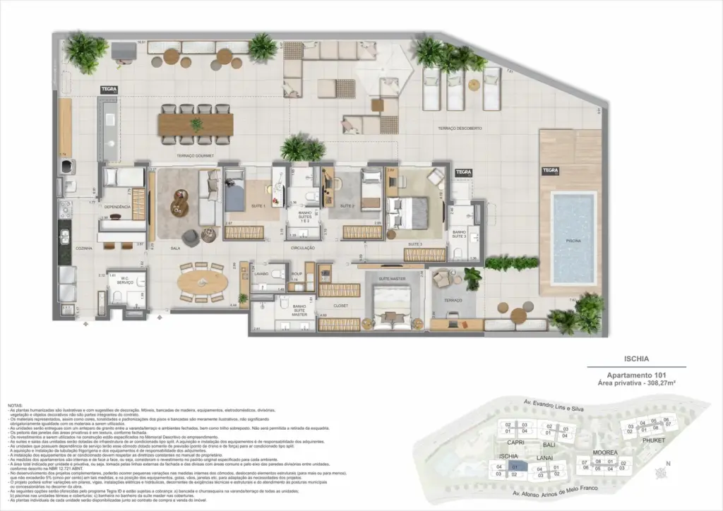Na Barra da Tijuca, entre o azul da praia e a conveniência da Av. das Américas, o Gaea Home Resort foi pensado para quem deseja um cotidiano de resort sem abrir mão da privacidade. O masterplan integra arquitetura contemporânea, paisagismo exuberante e serviços para tornar cada dia mais prático: lobbies amplos, circulações bem resolvidas e áreas de lazer distribuídas em pavimentos que alternam descanso, esporte e convivência. Os apartamentos-tipo de 3 e 4 suítes priorizam integração entre sala e varanda, com ventilação e luz natural abundantes; os gardens ganham terraços generosos para receber, cultivar e relaxar; e as coberturas lineares elevam a experiência com espaços ao ar livre dimensionados para refeições, banho de sol e contemplação. Nos ambientes comuns, o lazer se desdobra em academia completa, coworking, salões gourmet e de festas, brinquedoteca e playgrounds, além de um complexo aquático com raia de 25 m, piscina infantil, deck molhado e solário. Para celebrar, a Pool Party House reúne lounge climatizado, varanda com churrasqueira e forno de pizza; para desacelerar, o Gaea Spa oferece hidromassagem e salas de massagem. Quadras de areia, quadra recreativa e áreas ao ar livre ampliam as opções de movimento, enquanto facilidades como beach facilities, library of things, minimarket, espaço delivery e infraestrutura para carregamento de carros elétricos reforçam o senso de comunidade e praticidade. Um refúgio urbano, conectado aos melhores endereços da Barra e pronto para acolher diferentes ritmos de vida.
