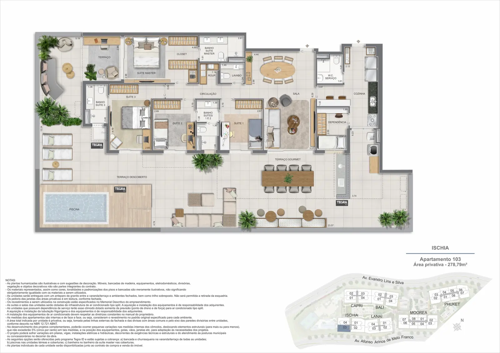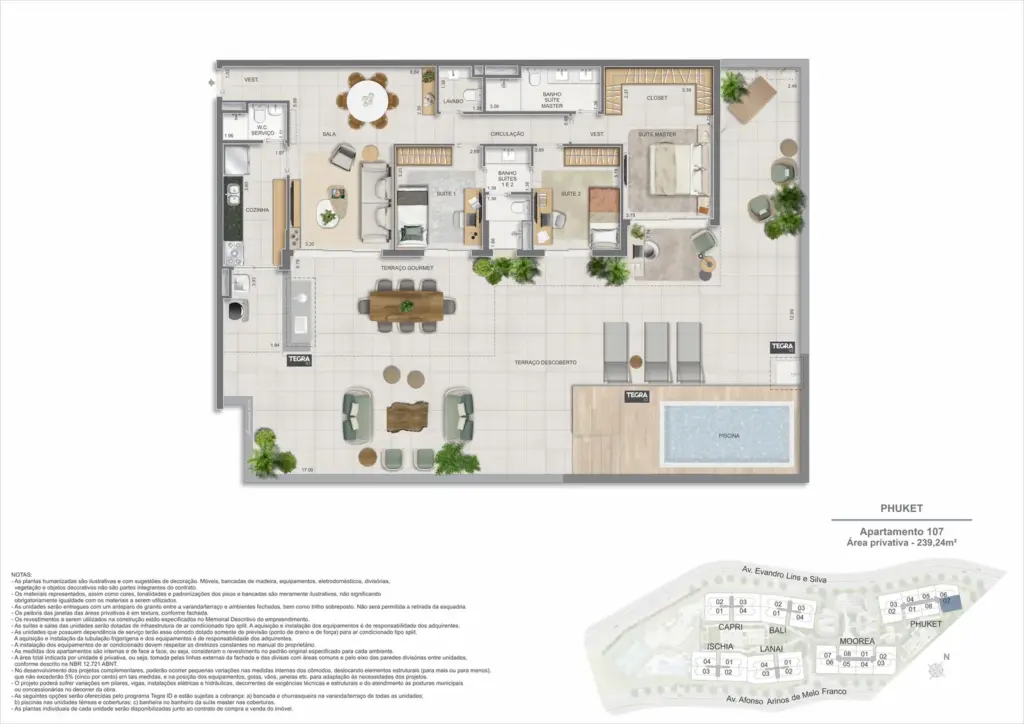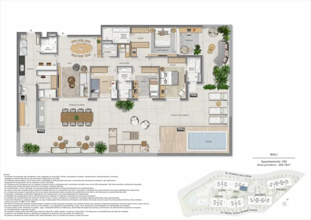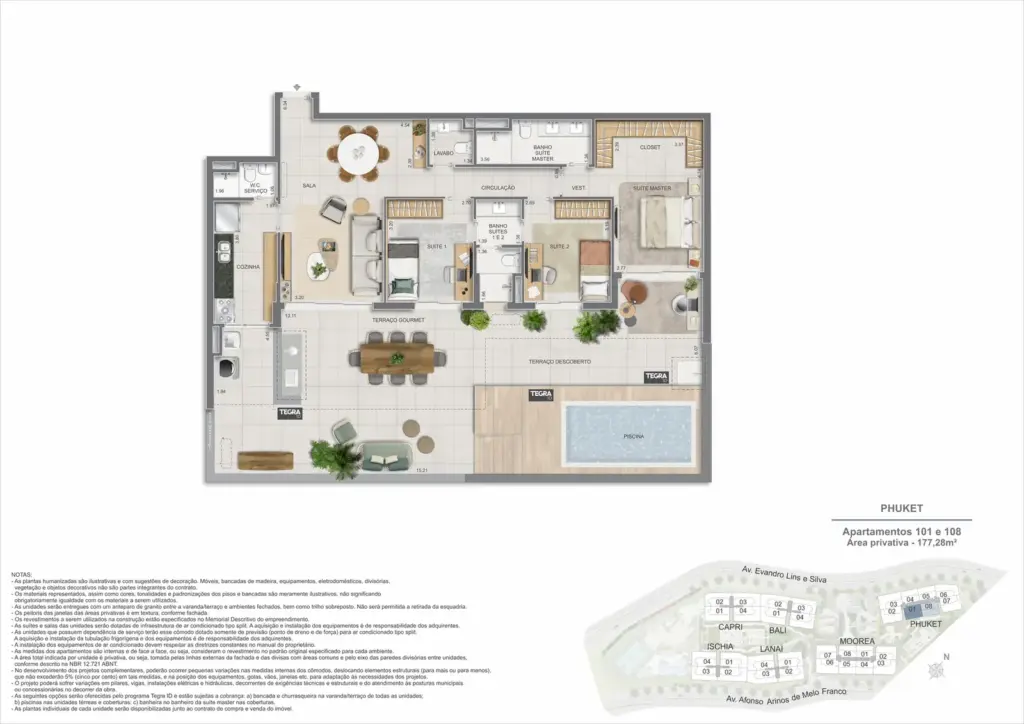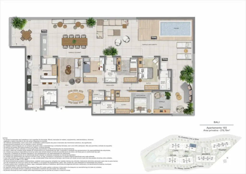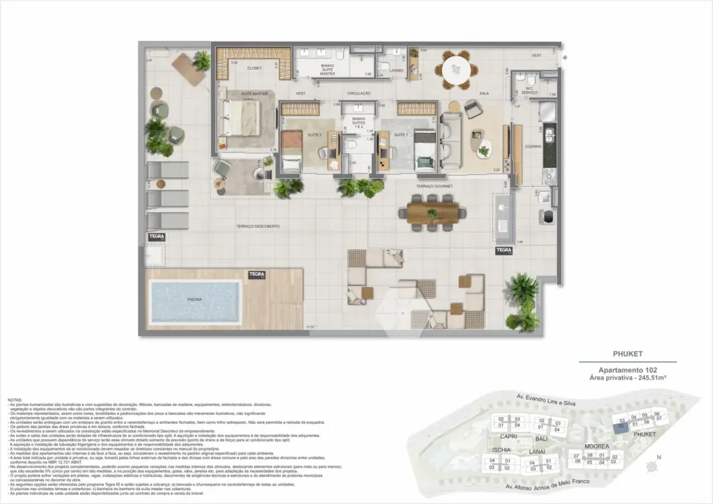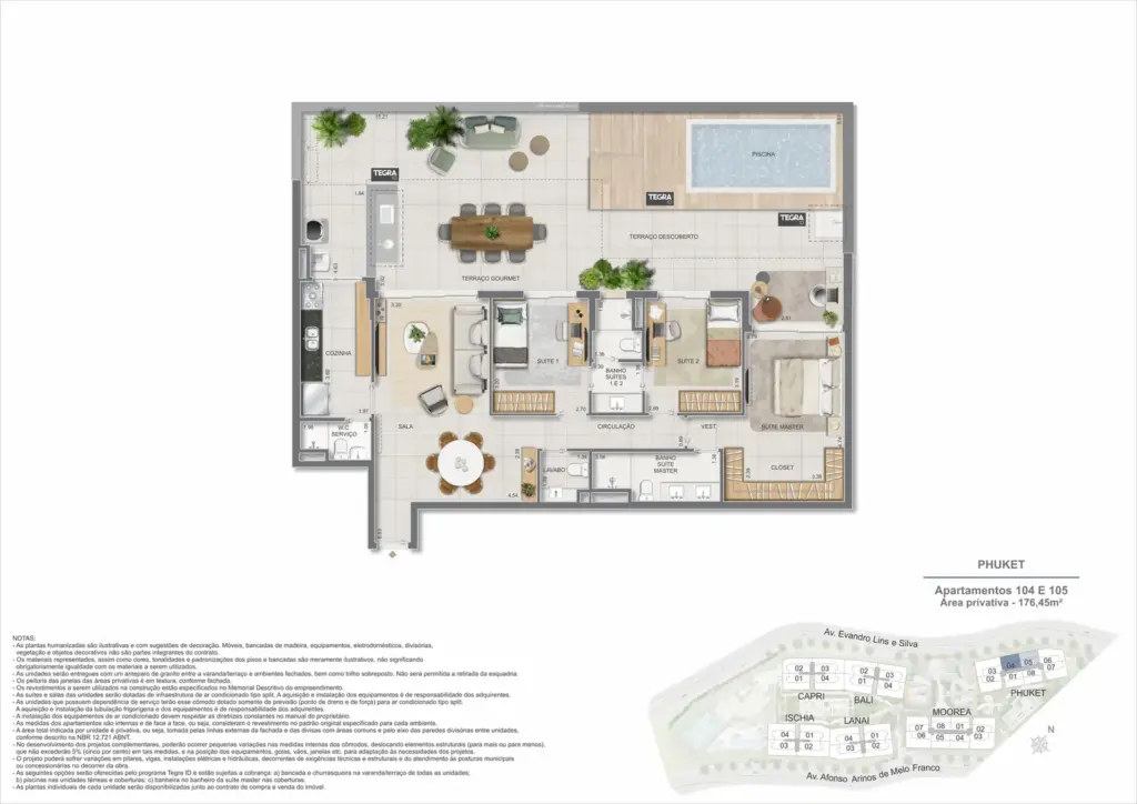 Na Barra da Tijuca, entre o azul da praia e a conveniência da Av. das Américas, o Gaea Home Resort foi pensado para quem deseja um cotidiano de resort sem abrir mão da privacidade. O masterplan integra arquitetura contemporânea, paisagismo exuberante e serviços para tornar cada dia mais prático: lobbies amplos, circulações bem resolvidas e áreas de lazer distribuídas em pavimentos que alternam descanso, esporte e convivência. Os apartamentos-tipo de 3 e 4 suítes priorizam integração entre sala e varanda, com ventilação e luz natural abundantes; os gardens ganham terraços generosos para receber, cultivar e relaxar; e as coberturas lineares elevam a experiência com espaços ao ar livre dimensionados para refeições, banho de sol e contemplação. Nos ambientes comuns, o lazer se desdobra em academia completa, coworking, salões gourmet e de festas, brinquedoteca e playgrounds, além de um complexo aquático com raia de 25 m, piscina infantil, deck molhado e solário. Para celebrar, a Pool Party House reúne lounge climatizado, varanda com churrasqueira e forno de pizza; para desacelerar, o Gaea Spa oferece hidromassagem e salas de massagem. Quadras de areia, quadra recreativa e áreas ao ar livre ampliam as opções de movimento, enquanto facilidades como beach facilities, library of things, minimarket, espaço delivery e infraestrutura para carregamento de carros elétricos reforçam o senso de comunidade e praticidade. Um refúgio urbano, conectado aos melhores endereços da Barra e pronto para acolher diferentes ritmos de vida.