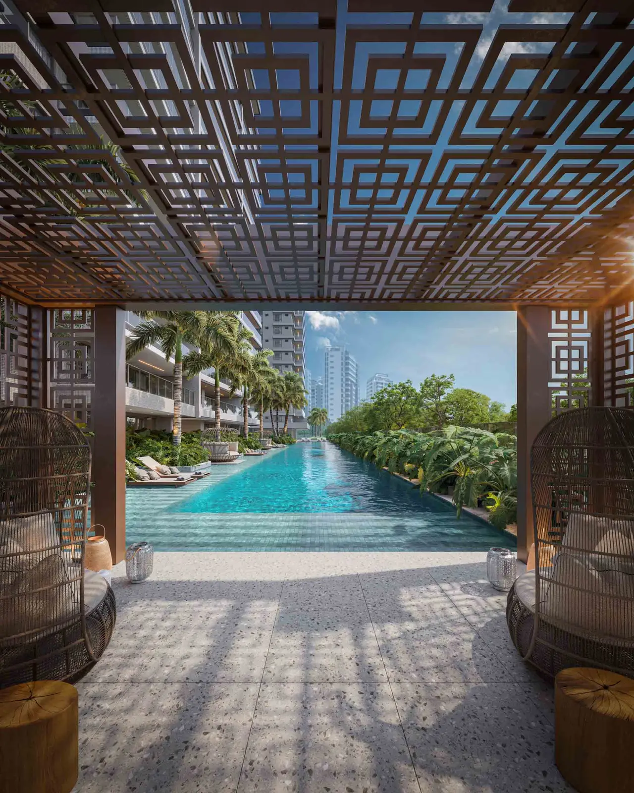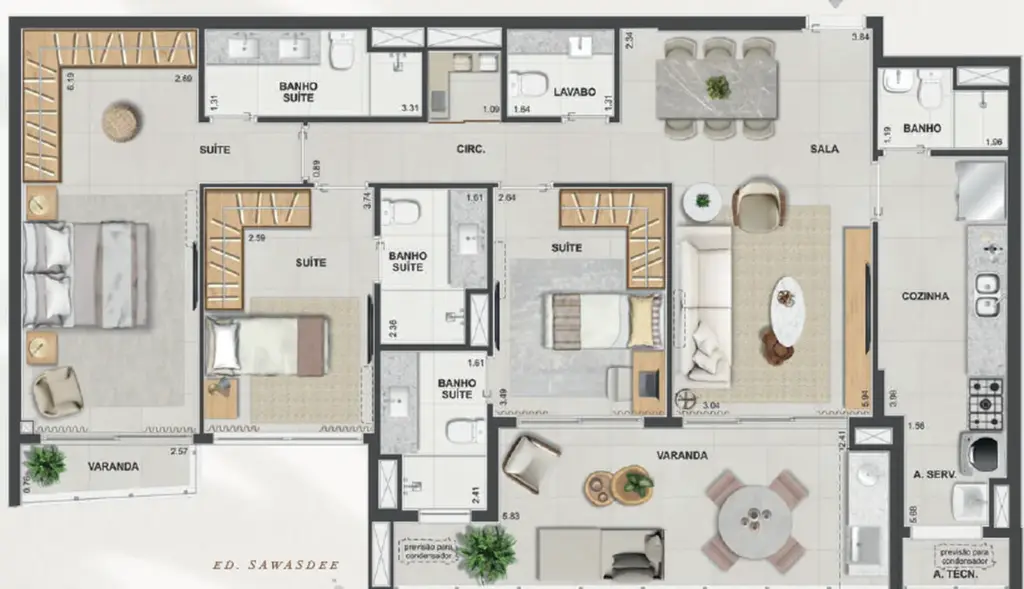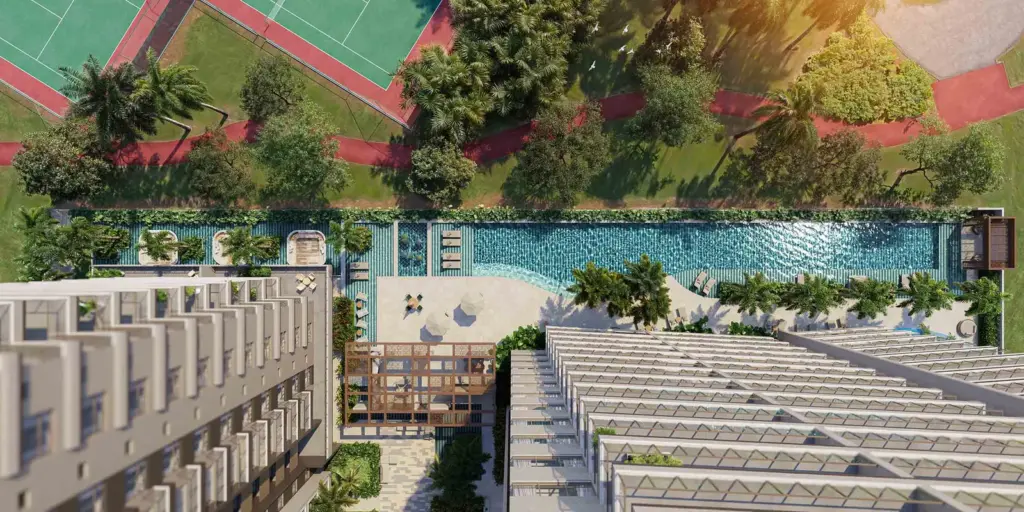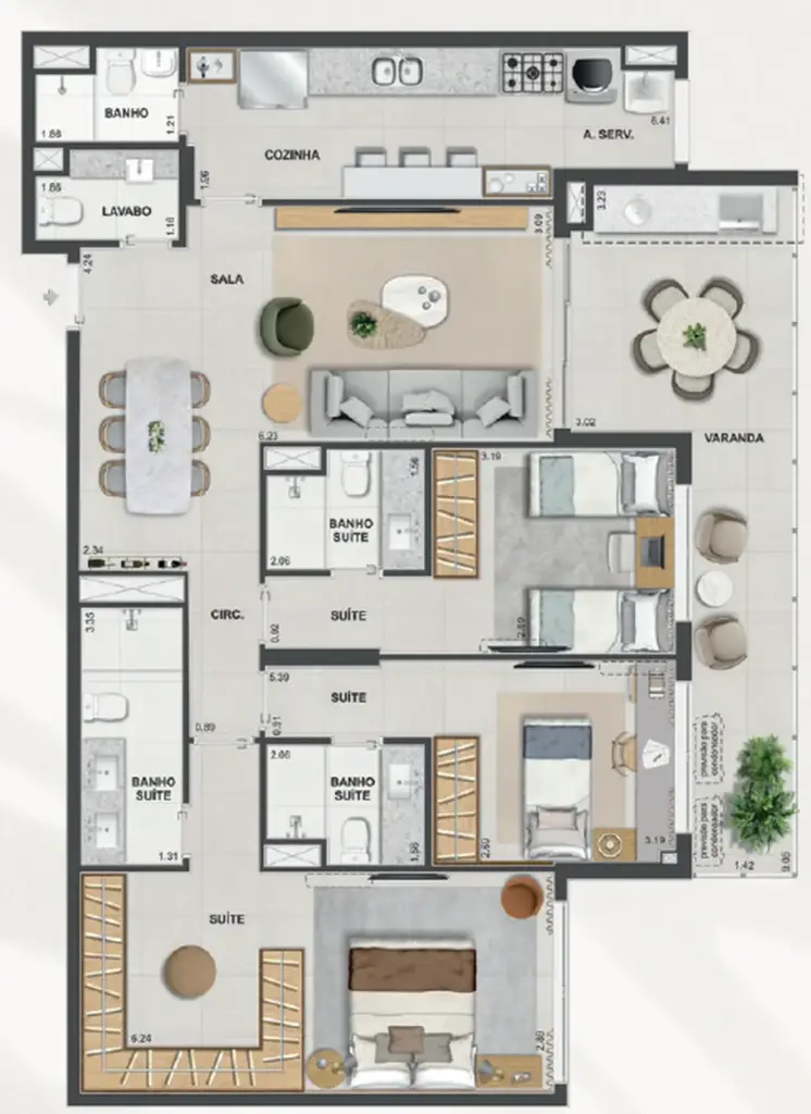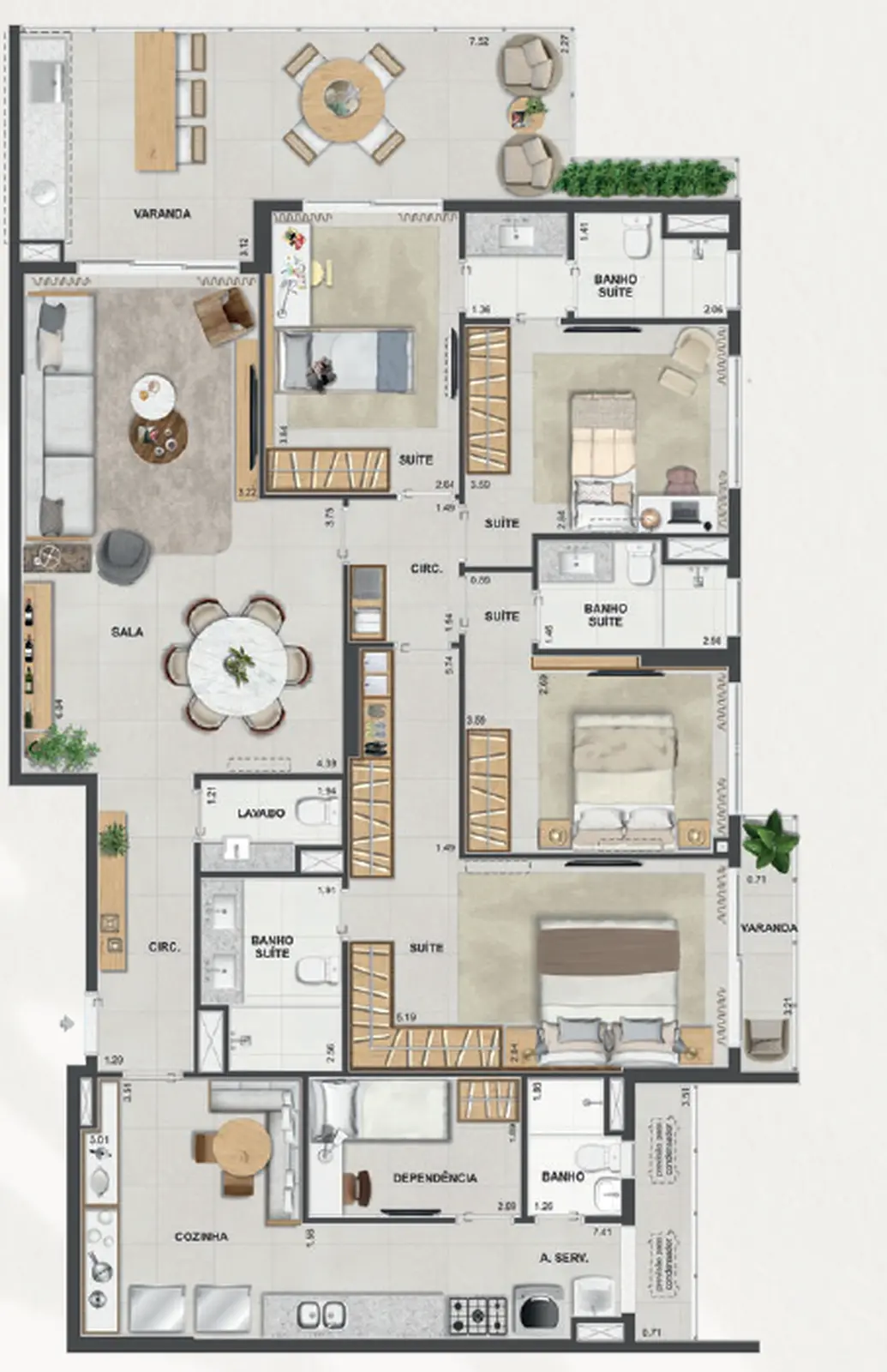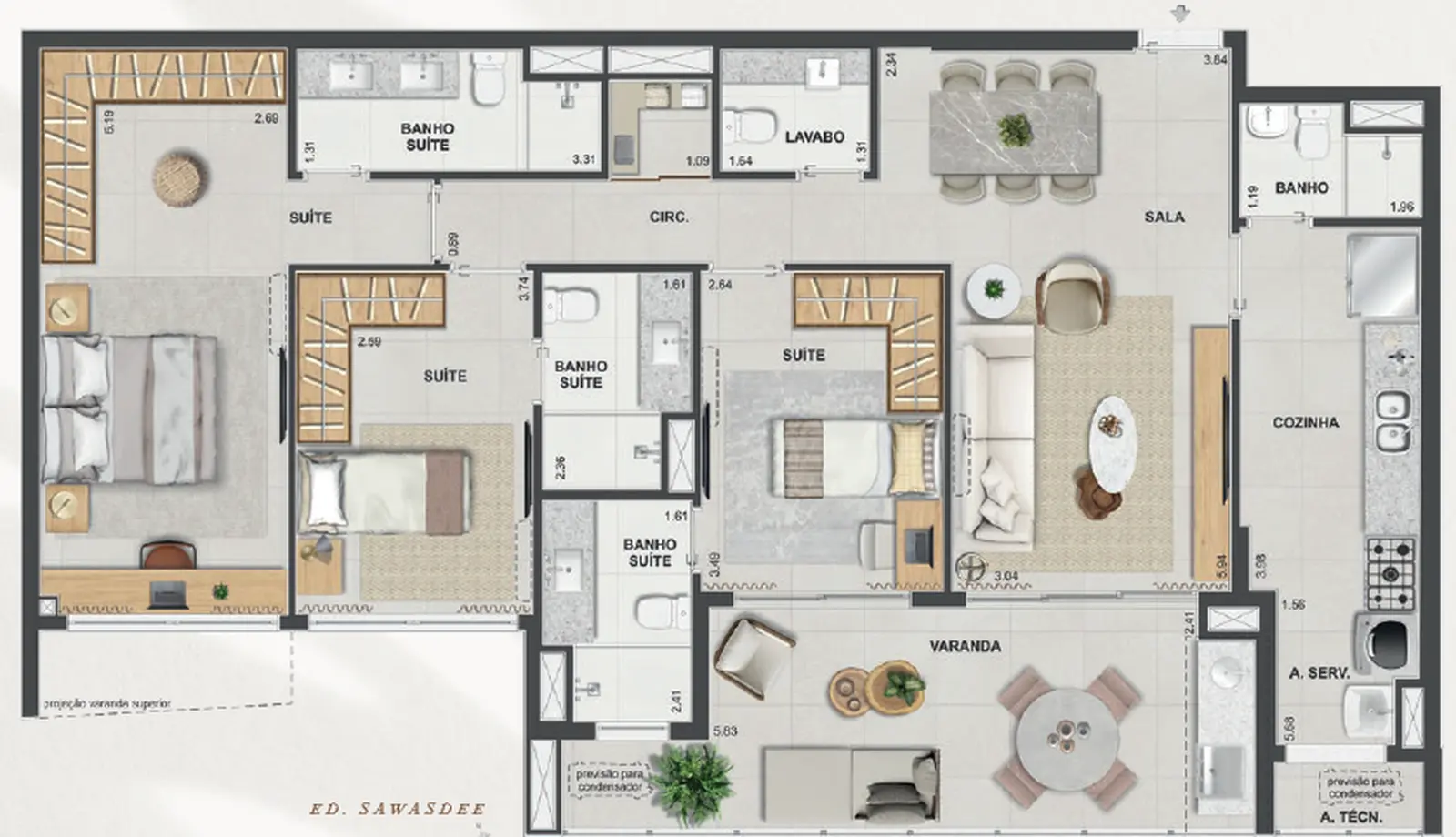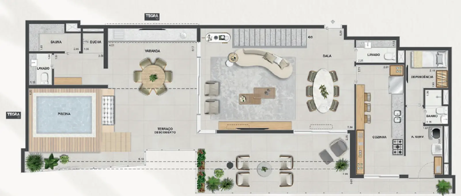 Em um dos pontos mais nobres da Barra da Tijuca, a Península, o Gran Thai Leisure Residence apresenta um conceito de residencial-resort que combina natureza, arquitetura contemporânea e serviços pensados para o cotidiano. O masterplan valoriza percursos ao ar livre, praças e jardins integrados aos espaços de convivência, enquanto as fachadas e varandas exploram a luz e a ventilação natural. Os apartamentos-tipo de 3 e 4 suítes (125 a 210 m²) privilegiam salas amplas e varandas generosas para cozinhar, receber e relaxar; os gardens ampliam a vida externa com terraços ajardinados; e as coberturas — lineares ou duplex estendem a experiência de morar com vistas abertas e ambientes para bem-estar. No clube interno, o lazer inclui piscina com raia e borda molhada, piscina infantil e solário; academia de alto padrão com área funcional; spa com salas de massagem e áreas de relaxamento; salão de festas e salões gourmet; brinquedoteca e espaço teen; além de coworking e salas de reunião que aproximam rotina e produtividade. Quadras e áreas multiúso favorecem prática esportiva, enquanto soluções como bicicletários, espaço delivery/lockers e infraestrutura para recarga de veículos trazem praticidade. Inserido entre parques, lago e shoppings de referência, com acesso fácil às principais vias da Barra, o Gran Thai une privacidade, paisagismo autoral e lazer completo — um refúgio urbano que traduz conforto, sofisticação e segurança em um endereço desejado.