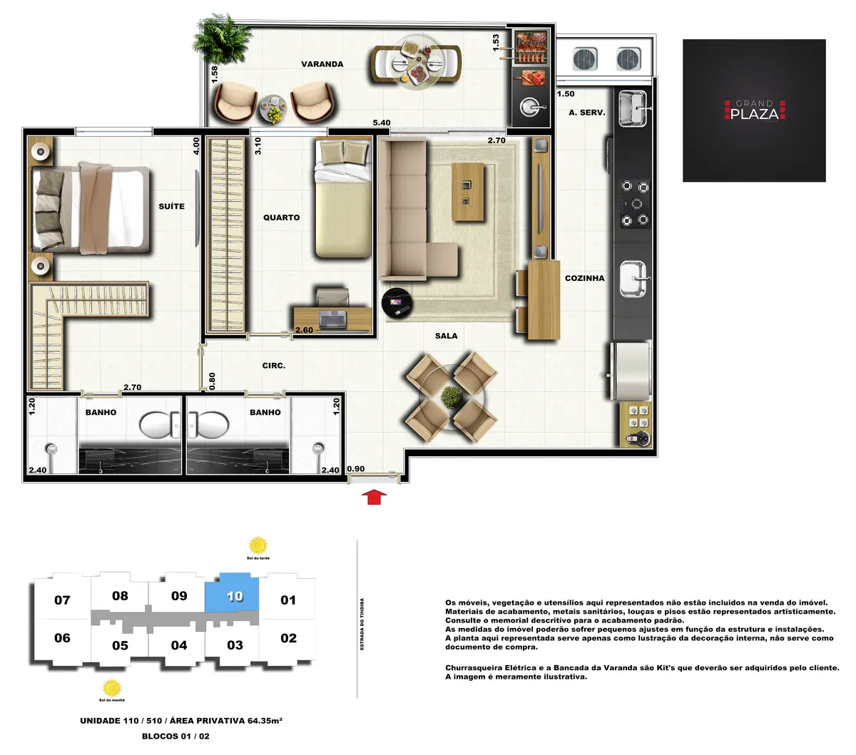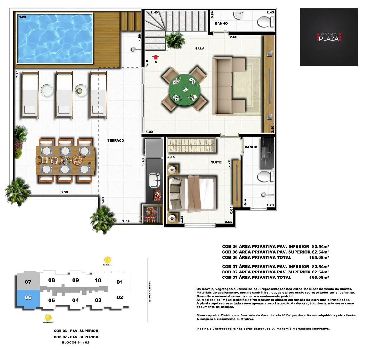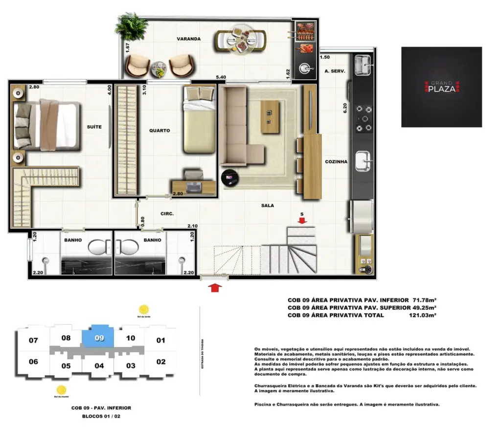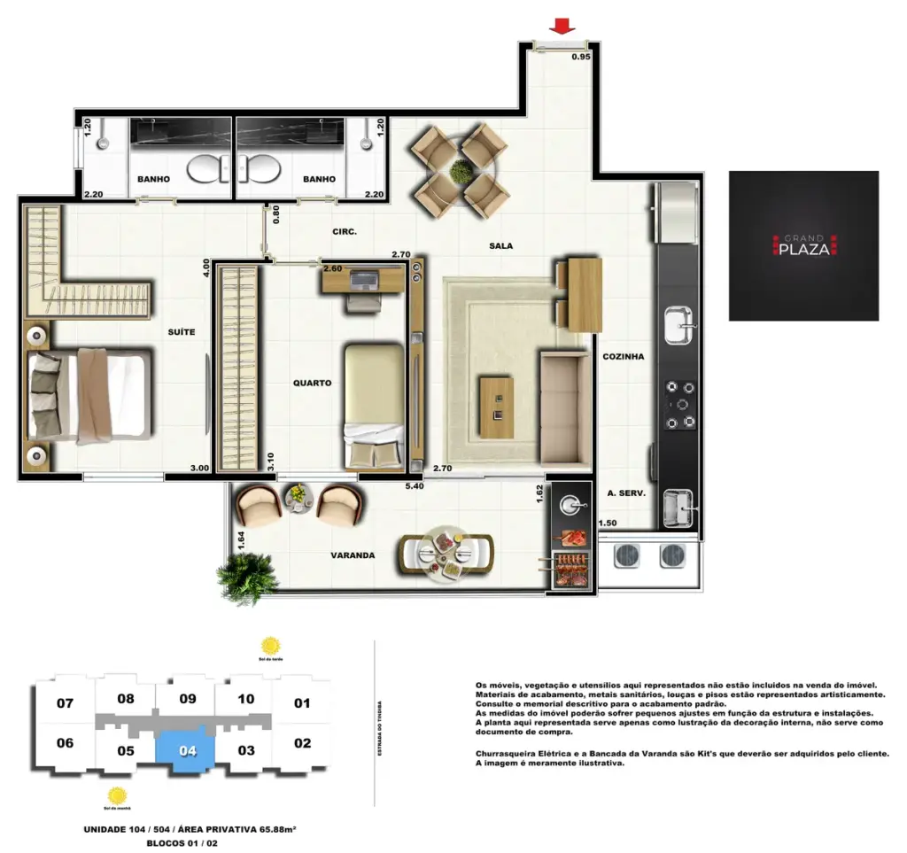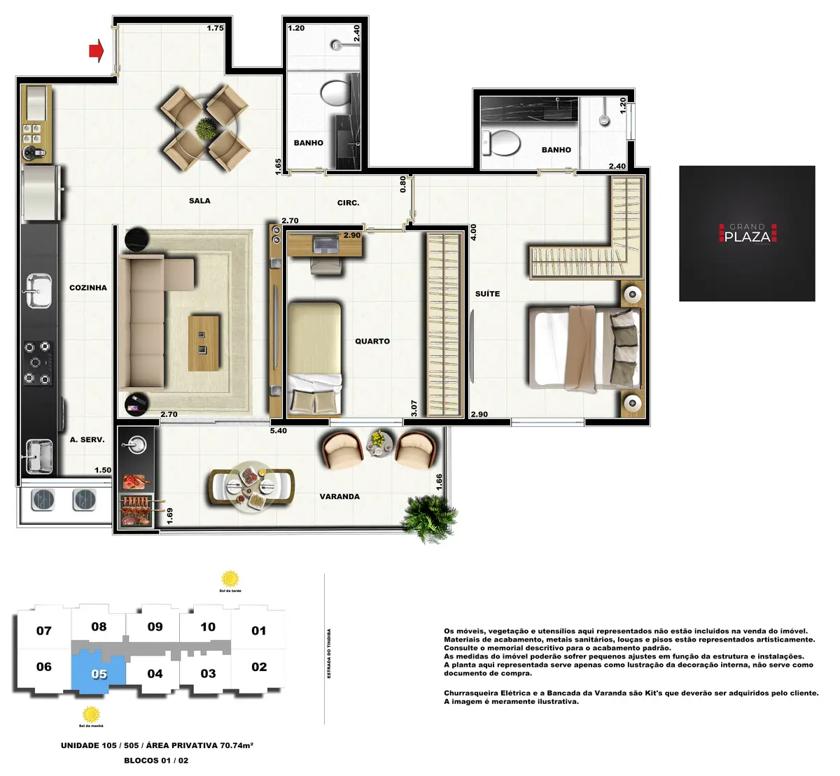 No coração da Taquara, o Grand Plaza Residences combina espaço, design e conveniência para uma vida completa em Jacarepaguá. Os apartamentos de 2 e 3 quartos (1 suíte) foram pensados para valorizar a luz natural, a integração da sala com a varanda e os acabamentos de qualidade, criando ambientes acolhedores para o dia a dia. Nas coberturas, a experiência se amplia com terraços perfeitos para receber e relaxar, com vistas abertas e privacidade. O condomínio oferece lazer para todas as idades: piscina convidativa, salão de festas elegante, churrasqueira ao ar livre, área fitness moderna, espaço kids lúdico, Game Zone para diversão, quadra de areia e bicicletário — além de praticidade com elevadores e organização inteligente das áreas comuns. Com endereço estratégico você fica perto de comércios, serviços, BRT e acessos da Transolímpica, garantindo mobilidade e facilidade diárias em um cenário urbano em evolução.