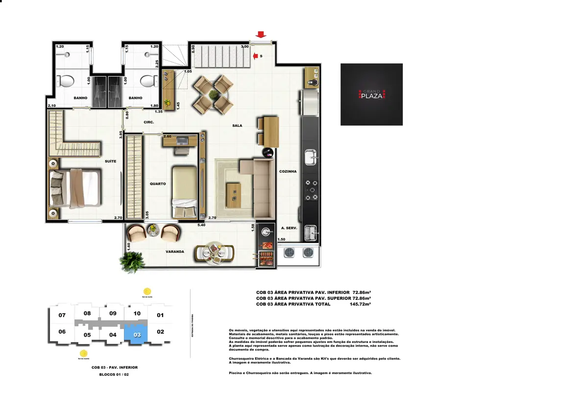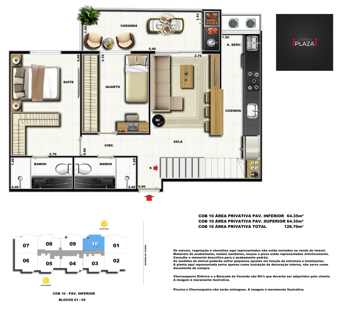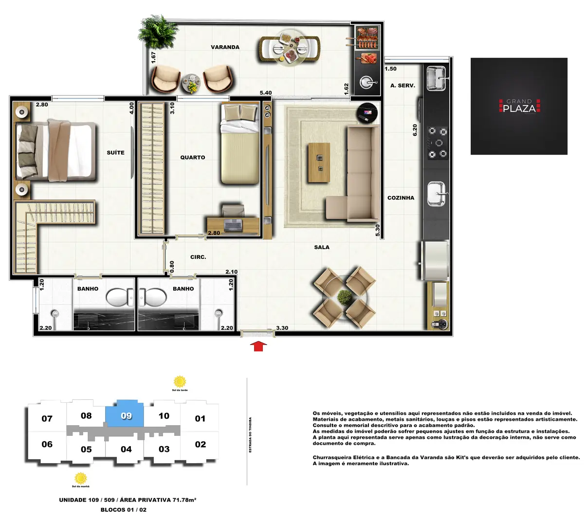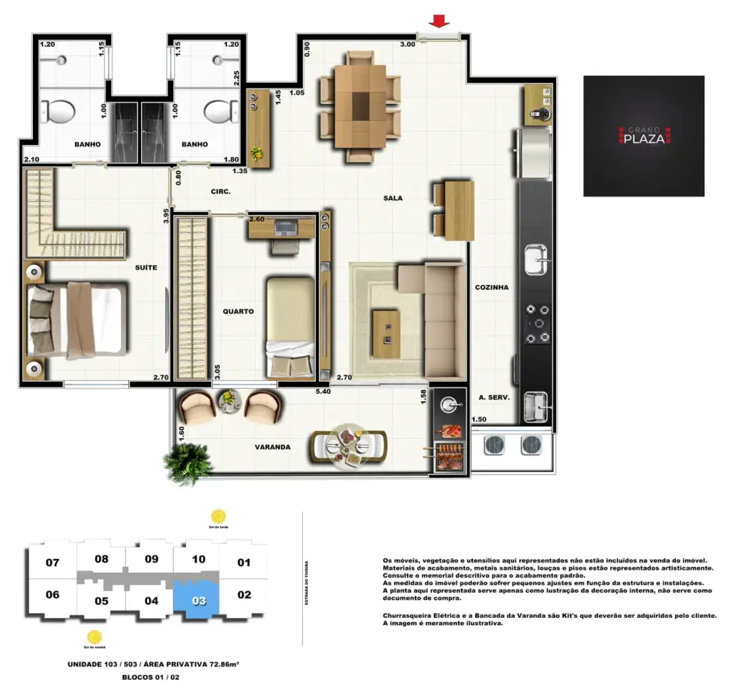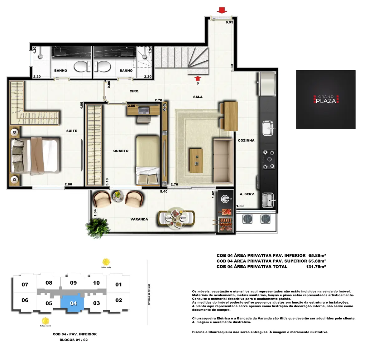 No coração da Taquara, o Grand Plaza Residences combina espaço, design e conveniência para uma vida completa em Jacarepaguá. Os apartamentos de 2 e 3 quartos (1 suíte) foram pensados para valorizar a luz natural, a integração da sala com a varanda e os acabamentos de qualidade, criando ambientes acolhedores para o dia a dia. Nas coberturas, a experiência se amplia com terraços perfeitos para receber e relaxar, com vistas abertas e privacidade. O condomínio oferece lazer para todas as idades: piscina convidativa, salão de festas elegante, churrasqueira ao ar livre, área fitness moderna, espaço kids lúdico, Game Zone para diversão, quadra de areia e bicicletário — além de praticidade com elevadores e organização inteligente das áreas comuns. Com endereço estratégico você fica perto de comércios, serviços, BRT e acessos da Transolímpica, garantindo mobilidade e facilidade diárias em um cenário urbano em evolução.