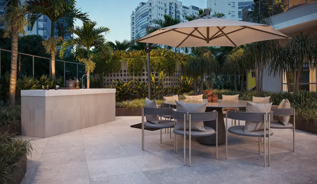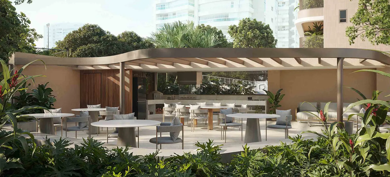 Academia * Bar da Piscina * Bicicletário * Brinquedoteca * Churrasqueira * Coworking * Espaço Delivery * Espaço Gourmet * Fechadura Biométrica * MiniMarket * Pet Place * Piscina * Piscina Infantil * Play Ground * Reuso de agua * Salão de festas * Salão Gourmet * Sauna * SPA * Vagas / Carros Elétricos
